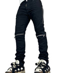 SKINNY BLACK DOUBLE ZIP PLEATED